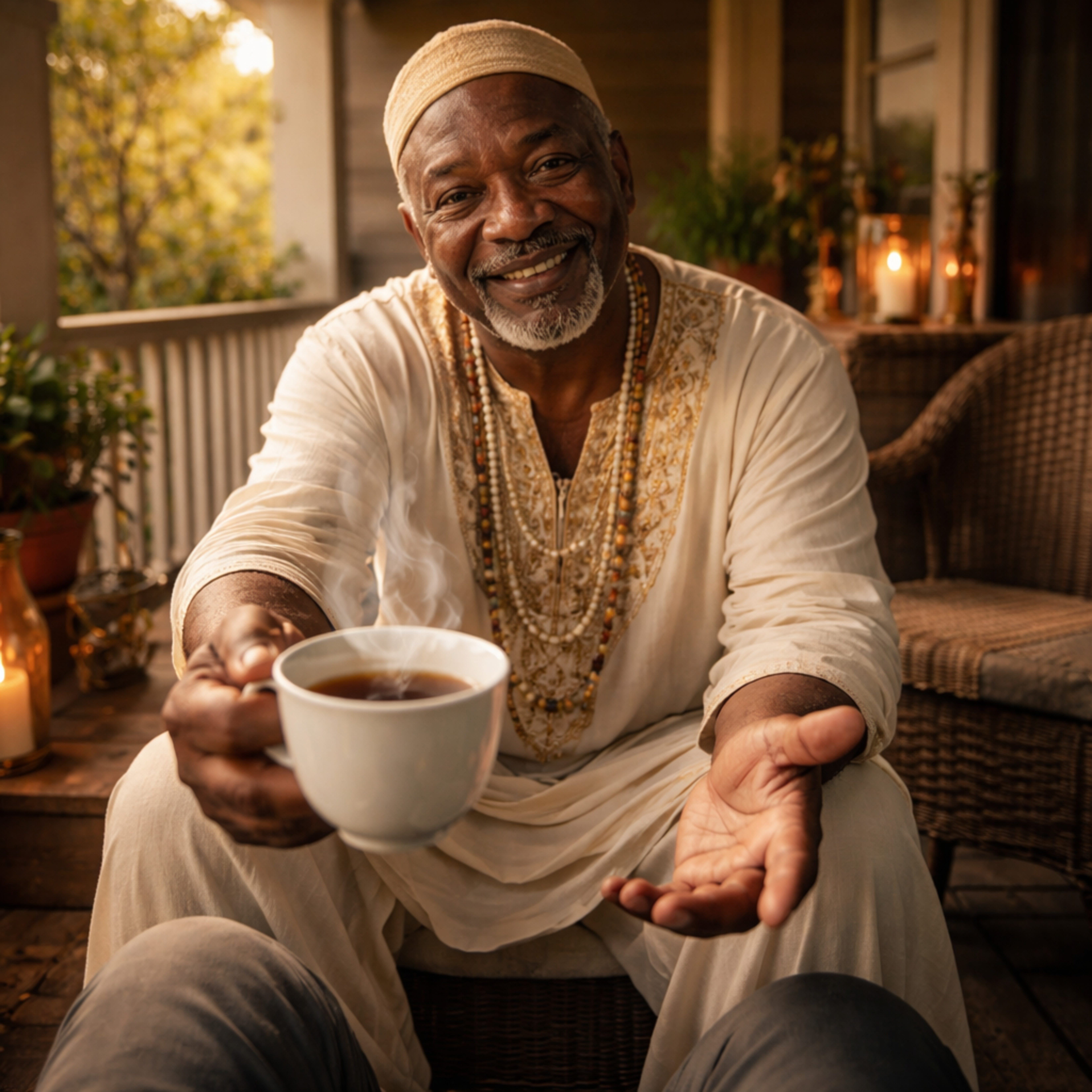 How’s that tea? Breathe with me and let your shoulders drop. In for a count of four. Hold for four. Out for four. Hold for four. Now breathe normal.