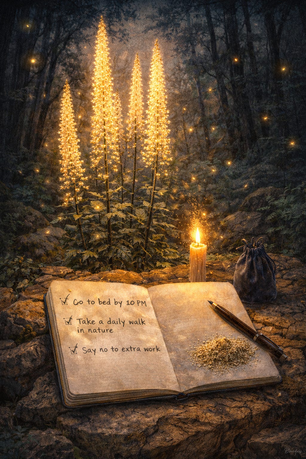 Black Snake Root goes by another name: fairy candle. It grows tall and straight in rocky forest conditions, putting up long pale spires that light up the shade around them. In Hoodoo, the powdered root is a boundary-setter, used to define what gets in and what doesn’t.