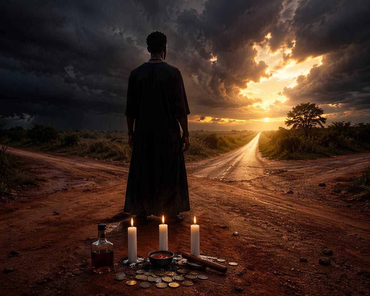 Three white candles at the crossroads or before Eshu’s vessel